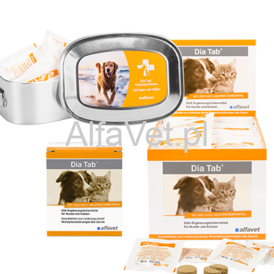 Dia Tab® to praktyczne, pojedynczo pakowane tabletki dla psów i kotów, które łączą ochronę śluzówki, wiązanie wody i wsparcie mikrobiomu, a do tego dostarczają elektrolitów. Dawkowanie jest proste, a produkt świetnie sprawdza się w domowej i „podróżnej” apteczce przy i po ostrych biegunkach.