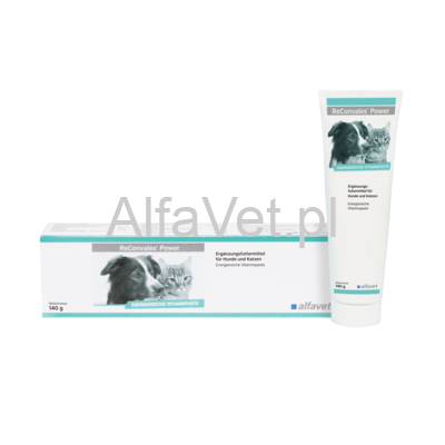 ReConvales® Power to wysokoenergetyczna pasta witaminowa, zaprojektowana właśnie po to, aby dostarczać energię i witaminy w skoncentrowanej postaci. Producent wskazuje także na obecność tauryny (jako aminokwasu niezbędnego dla kotów), minerałów oraz pierwiastków śladowych, a także na bardzo dobrą smakowitość i akceptację [alfavet.de]. Dodatkowym wyróżnikiem jest brak cukru i słodu [alfavet.de].